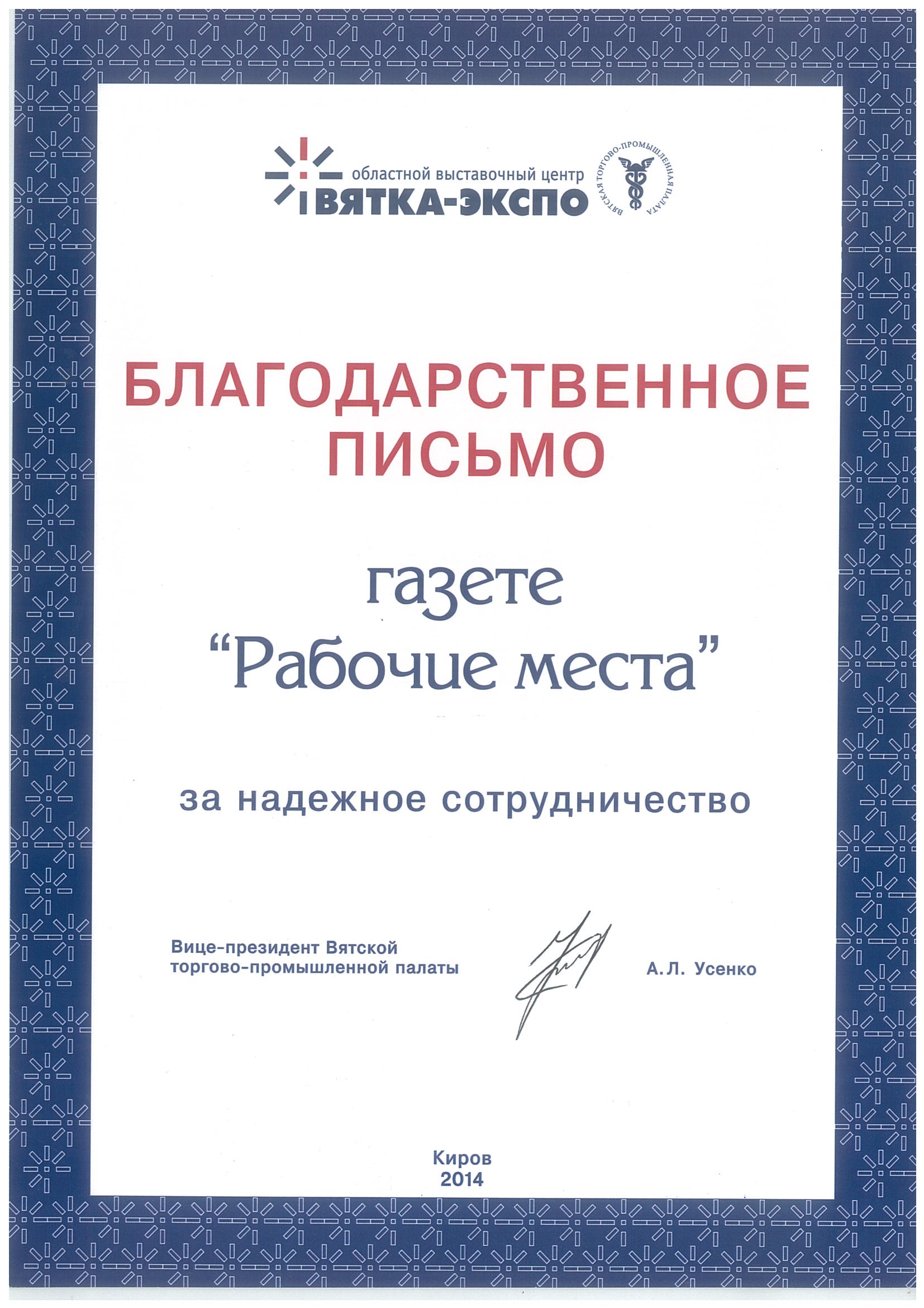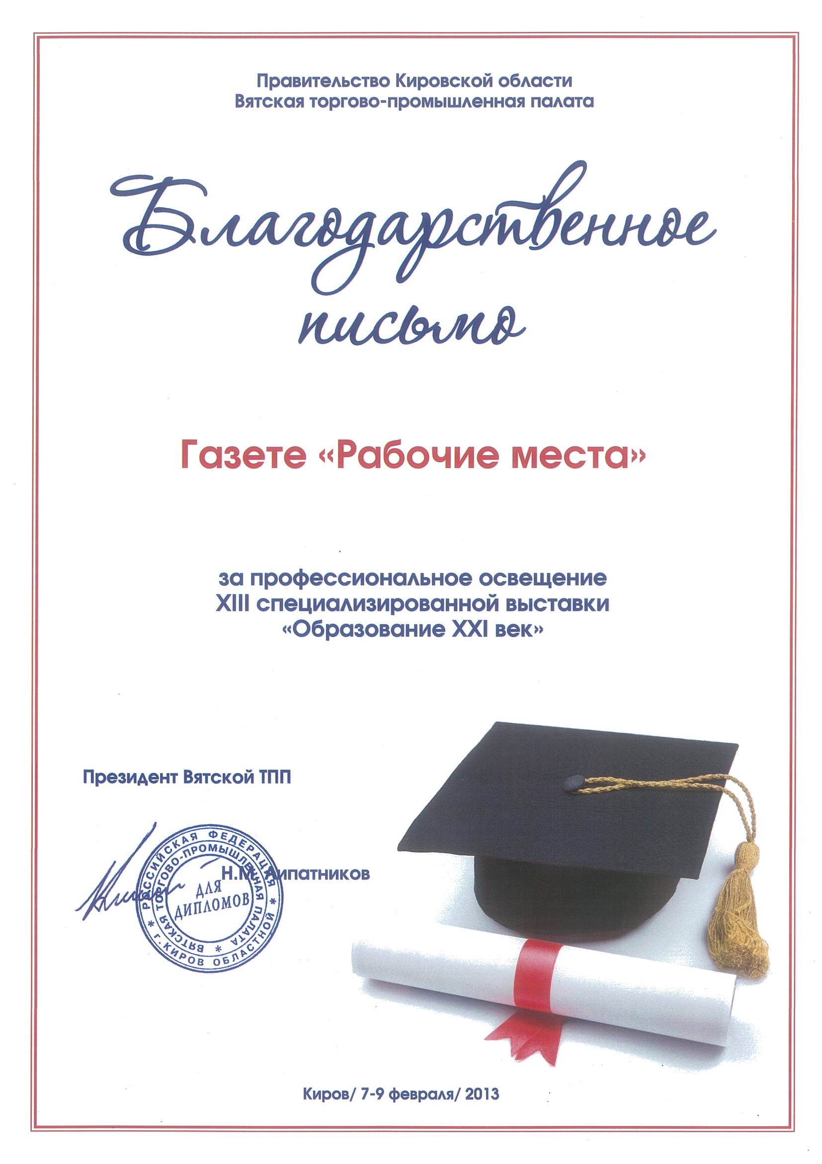 Газета «Рабочие места» — деловое специализированное издание о работе в Кирове, ориентированное на соискателей, ищущих работу, а также специалистов отделов кадров, кадровых служб и руководителей предприятий и организаций.
