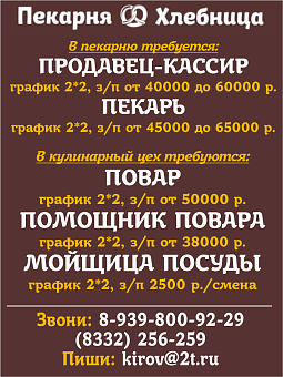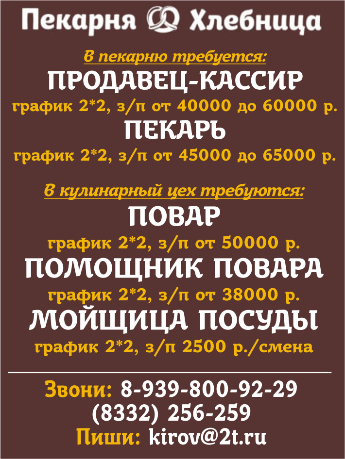 Как всегда на страницах нашей газеты самые свежие вакансии и предложения о работе в Кирове.